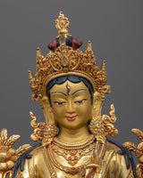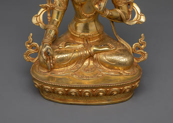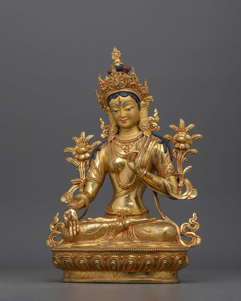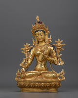 Handcrafted 24K Gold Gilded White Tara Statue for Sacred Shrine