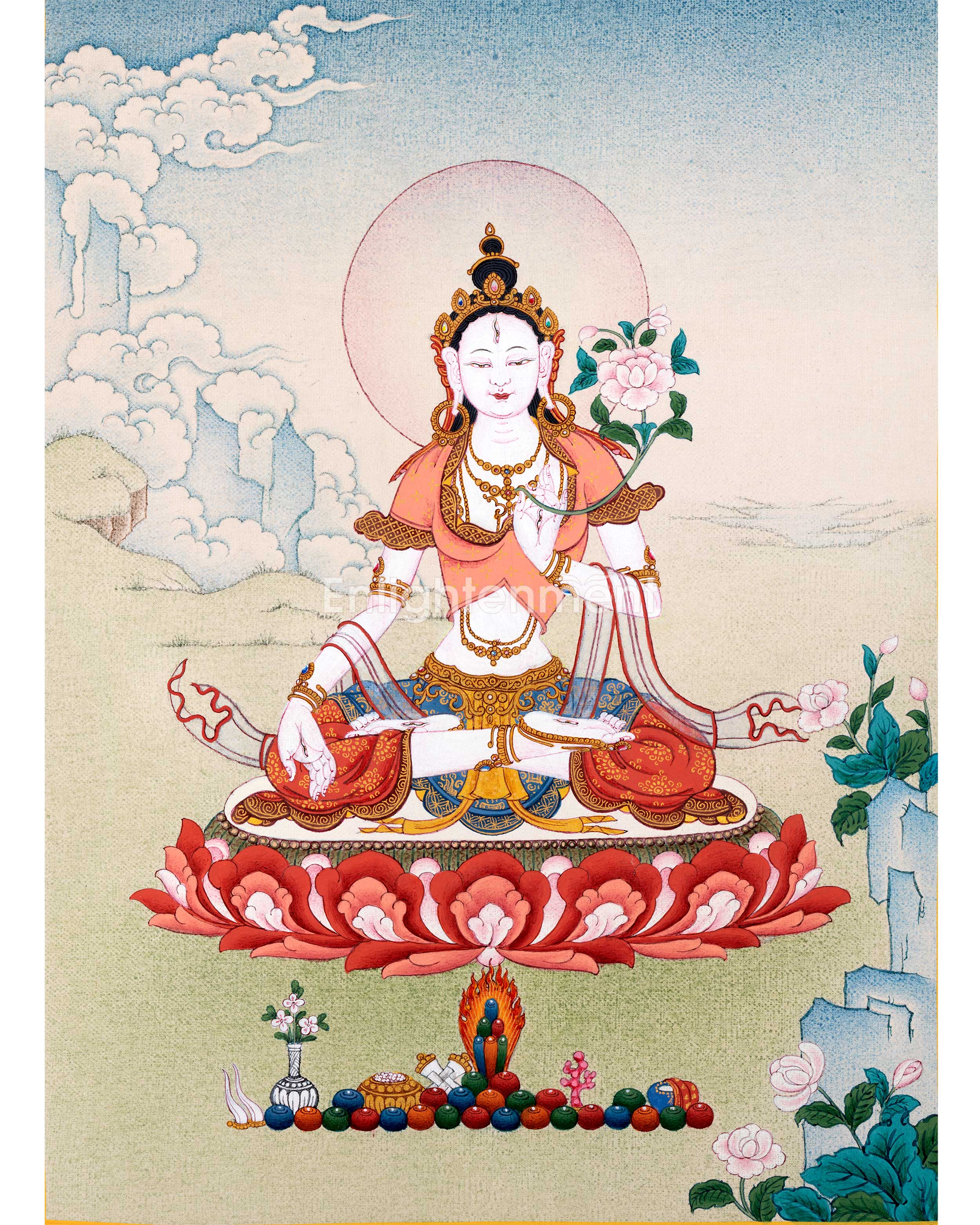 White Tara Deity Thangka, The Goddess of Compassion and Longevity