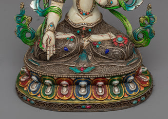 White Tara stands out as a symbol of compassion, long life, healing, and peace in the rich tapestry of Vajrayana Buddhism. Our White Tara statue, often represented with seven eyes to perceive the world's miseries, intends to infuse your space with her serene atmosphere. This exquisitely made image of White Tara serves as a reminder of the power of compassion and the opportunity for human progress. May this lovely statue encourage you on your spiritual journey and provide peace to your yard.