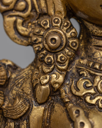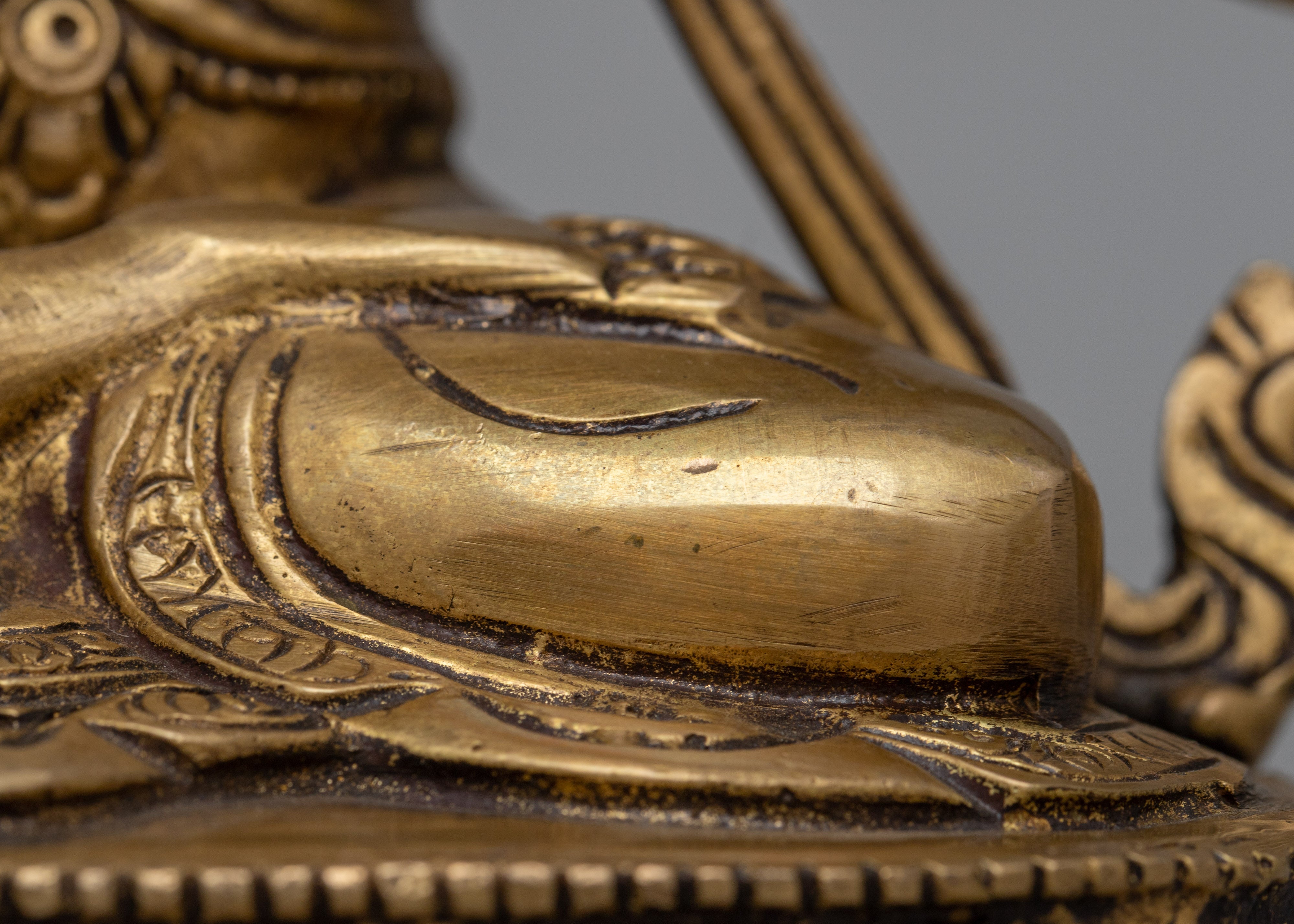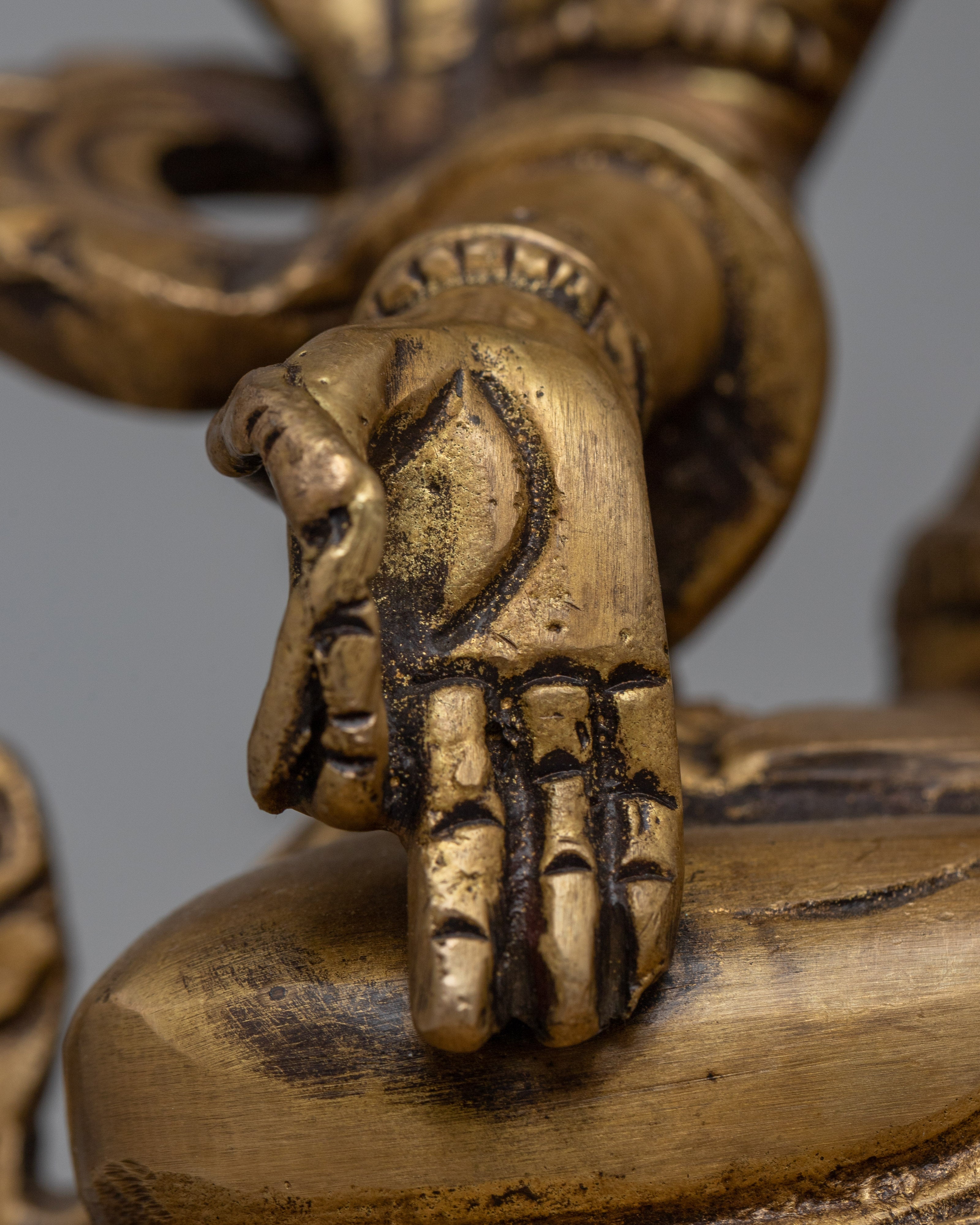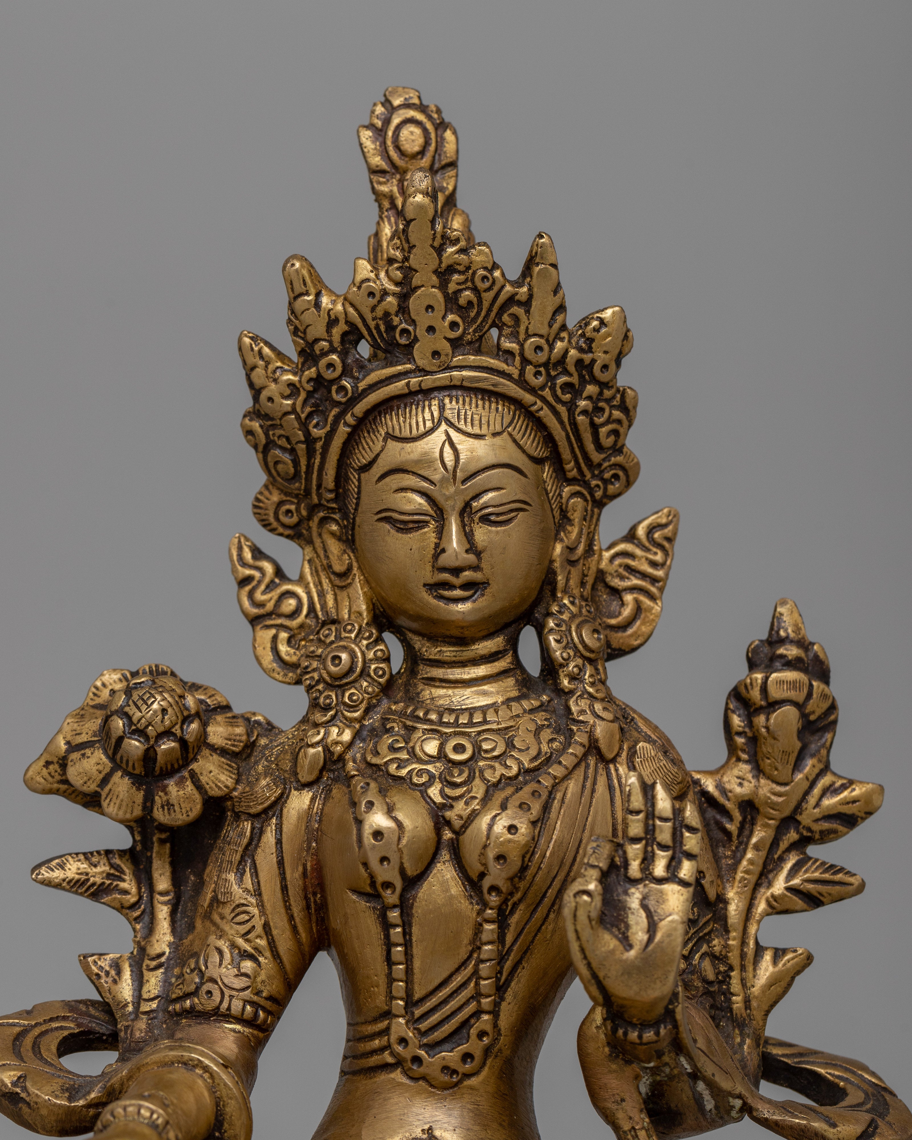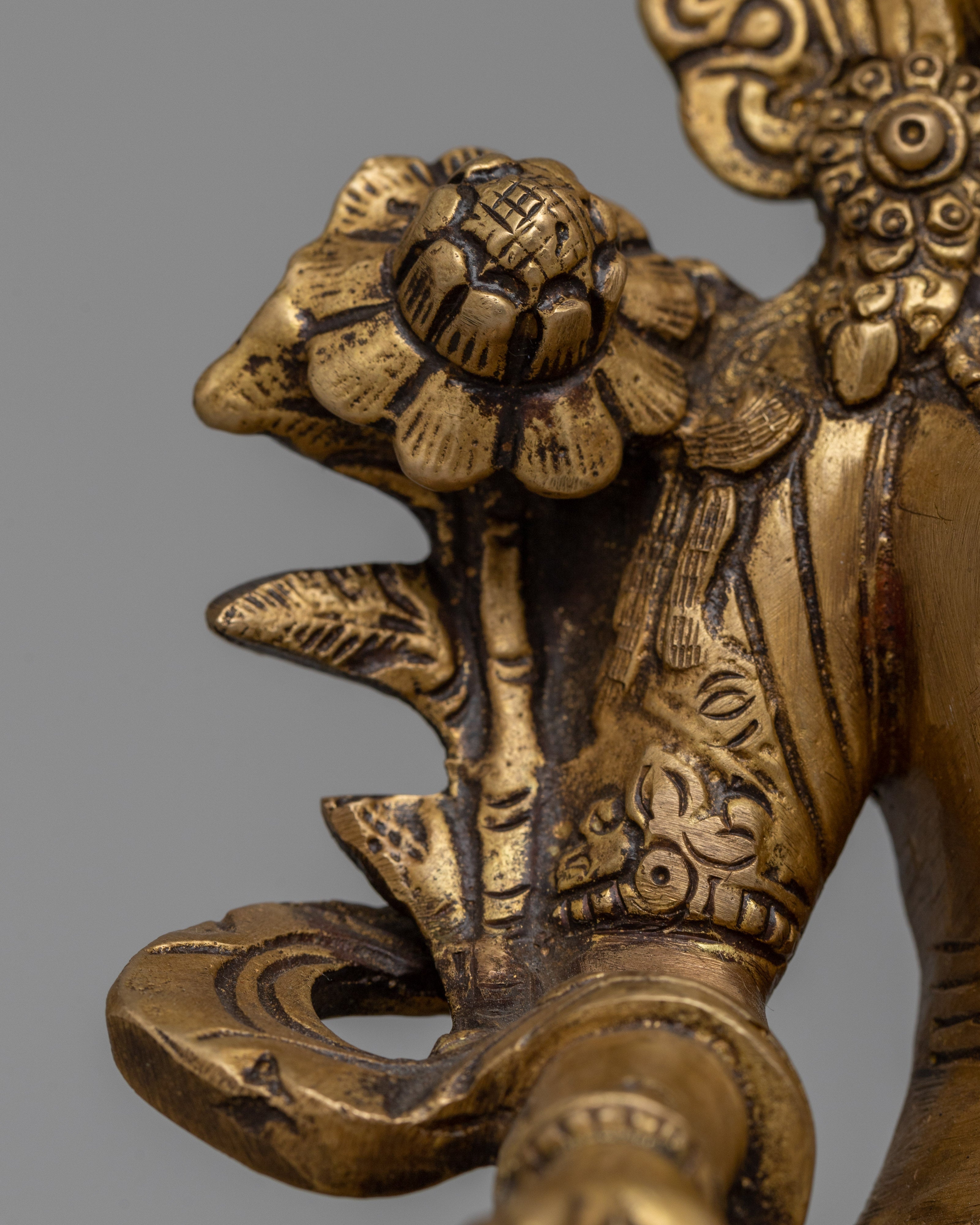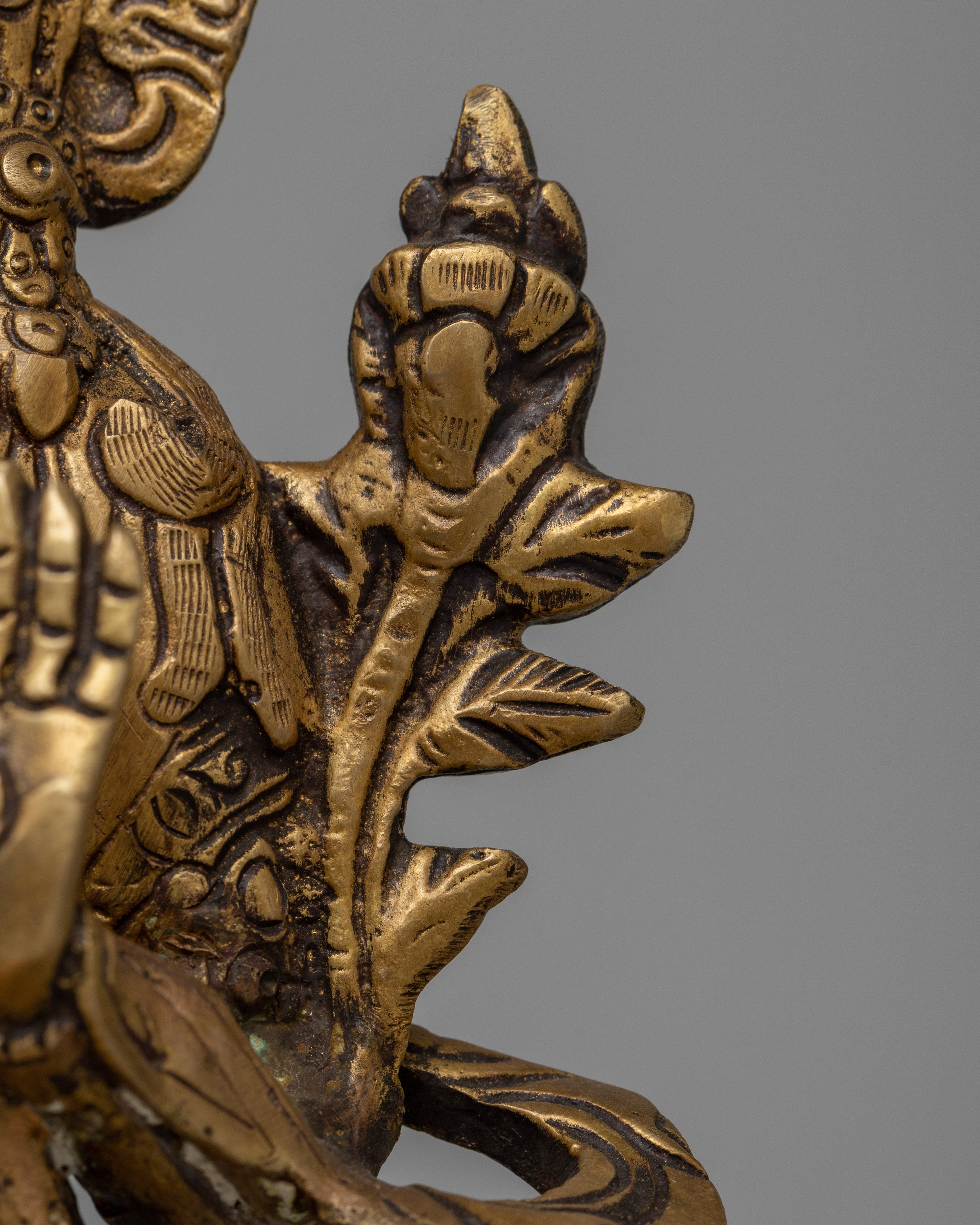 This statue, with its fine workmanship, is a meditation and spiritual reflection focus point. It guides practitioners on their path to inner calm and enlightenment by inviting them to connect with the divine attributes of compassion and wisdom, whether it is shown in a shrine or as a treasured adornment.