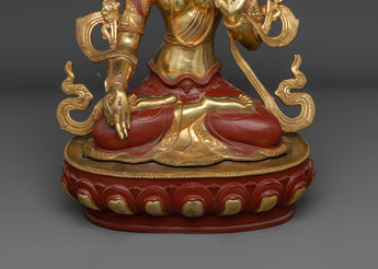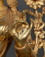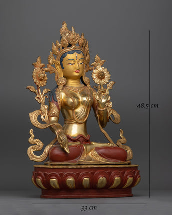Add Tranquility to Your Home with the White Tara Gold Gilded Oxidized Statue