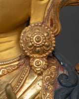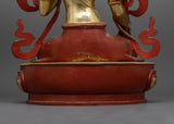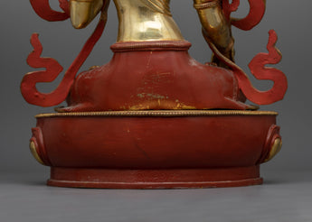 This 8.35 kg statue is sturdy and long-lasting, so it will always be a treasured addition to your collection. The harmonizing combination of rusted copper and gold represents White Tara's ageless compassion and restorative abilities. This statue is perfect for those who practice Buddhism, love meditation, or appreciate beautiful art. It will help you become more deeply connected to White Tara's teachings and blessings.