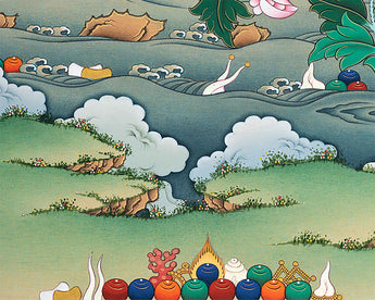 As requested for consecrations/blessings, we can take thangka to Monasteries/Rinpoche from nearby Boudha Stupa. We kindly ask you to offer $50 for the monasteries for blessings/consecration services.