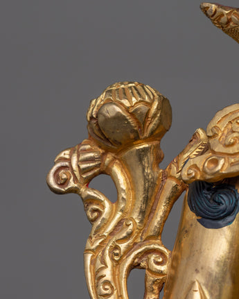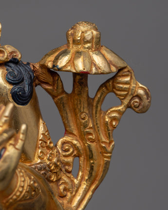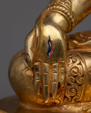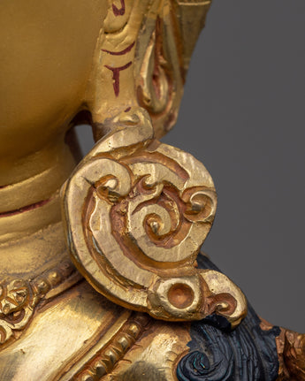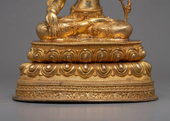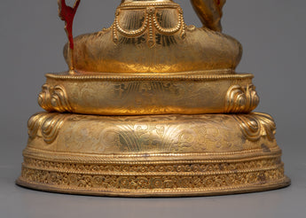 The intricate details and gold gilding on this statue will catch the eye and imbue any space with a sense of calm and serenity. The ideal Buddhist shrine addition can be a meditative accompaniment for yourself or any devotee.