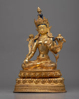 White Tara Statue Gilded in 24K Gold For Meditative Purpose