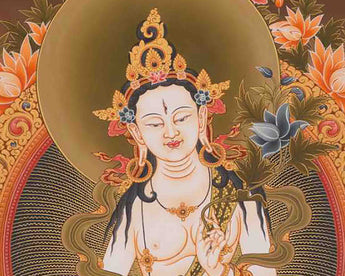 White Tara Thangka | Tibetan Dolkar Bodhisattva Of Long Life | Religious Wall Decoration