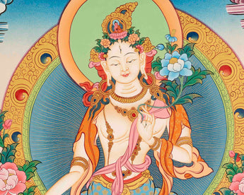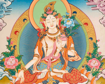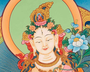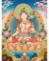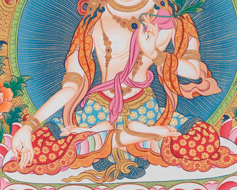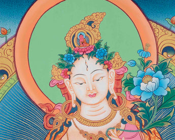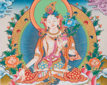 White Tara Thangka Art | Original Hand Painted Female Bodhisattva Art | Wall Decoration Painting |