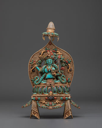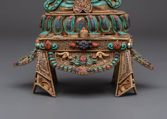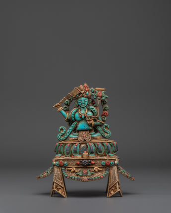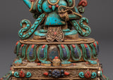 Made from copper, this Manjushri statue showcases expert craftsmanship and design. The detailed features of the statue capture Manjushri’s serene expression and posture, symbolizing the enlightenment of the mind and the triumph over ignorance. The addition of coral and turquoise adds both beauty and spiritual power to the piece. Turquoise is known for its healing properties and protective energy, while coral supports emotional healing and grounding. Together, these elements make this statue a powerful tool for those on a journey of spiritual growth and enlightenment.