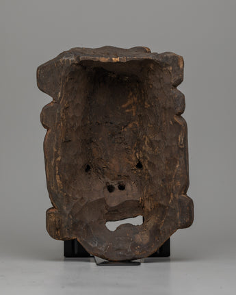 Our Vintage Wooden Face Mask, whether displayed as a cherished piece of history or appreciated for its intricate craftsmanship, provides a physical connection to the Himalayas' spiritual tradition. Immerse yourself in its alluring presence and allow it to take you to a bygone period, where the whispers of the past collide with the present, enticing you to embark on a journey of cultural inquiry and discovery.