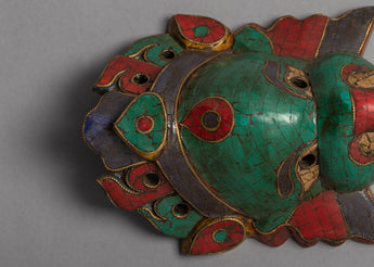 This mask is a true masterpiece of craftsmanship, made by skilled artisans who have carefully handcrafted it with intricate designs and gemstones embedded in it. Each gemstone is precisely placed, adding to the mask's beauty and value. The mask is not only an aesthetically pleasing work of art but also a cultural symbol that represents traditional practices and beliefs. It is a perfect addition to any art collector's collection or can be displayed in any space to add a touch of elegance and style.