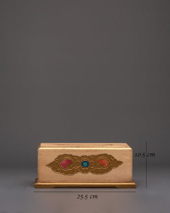 This napkin holder is made of wood and hand-painted with acrylic colors. Its elaborate decorations reflect cultural artistry. The golden base with colorful ornamentation in shades of red and blue provides a bright charm, elevating it beyond a table item to a standout piece of home décor. Its rectangular design and smooth texture let it to match both modern and classic surroundings, making it a perfect choice for celebratory dining tables or everyday use. This wooden napkin holder makes a great home décor present for special occasions, housewarmings, or festive gatherings. Its beautiful craftsmanship ensures that it not only organizes napkins, but also increases the aesthetic attractiveness of any environment.