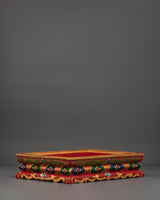 The Wooden Tibetan Tray is a beautifully carved tray suitable for spiritual rituals and offerings. This magnificent piece is 10cm high and 41cm wide, with a side width of 31cm, providing a balanced and expansive surface for your rituals. This tray is both utilitarian and ornamental, making it ideal for Tibetan Buddhist rituals, meditation activities, or simply adding to your altar area. This tray, crafted from solid wood and accented with brilliant acrylic colors, serves as a stunning backdrop for all your spiritual practices.