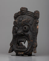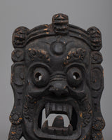 Wooden Vintage Mahakala Mask | Tabletop Decor with Spiritual Essence