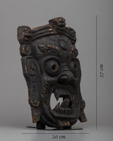 Showcased as an homage to spirituality and artistry, the Wooden Vintage Mahakala Mask is a window into the past as well as a decorative item. Its presence in any area inspires awe and devotion and invites reflection on the symbolism and riddles contained in its finely carved features.