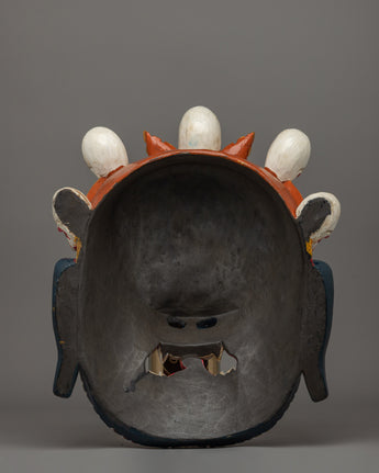 Crafted with intricate detail from high-quality wood, this mask features the bold and commanding presence of Bhairav. It is both a spiritual tool and a work of art, inviting the powerful energies of protection, transformation, and strength. Placing this mask in your sacred space will protect your environment and amplify your spiritual practices, invoking positive transformation and empowering your rituals.