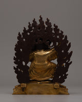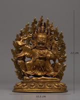 Presenting the Wrathful Deity Bernagchen Mahakala Statue, a wonderful symbol of spiritual power and protection. Crafted with precision on a copper base and embellished with sumptuous 24k gold plating, this statue stands 22cm tall and exudes divine authority.