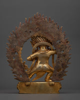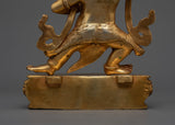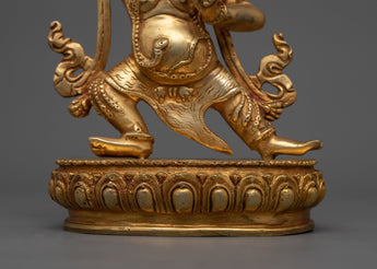 This Wrathful Deity Chana Dorje (Vajrapani) Sculpture, stands at a height of 10.8 inches (27.5 cm) with a base width of 9.1 inches (23 cm), presenting a powerful and dynamic representation of the Bodhisattva of Power. Crafted from a copper body and adorned with 24K gold gilding, the statue exudes strength and spiritual energy.