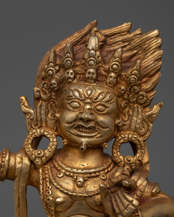 24K Gold Gilded Wrathful Deity Chana Dorje (Vajrapani) Sculpture | Symbolizing His Eternal Wisdom and Compassion