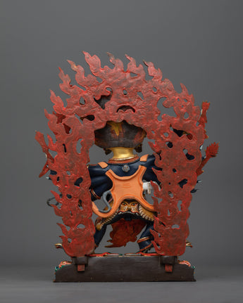 Hayagriva, also known as the wrathful incarnation of Avalokiteshvara in Tibetan Buddhism, reflects the fiery and protective qualities of compassion. He is frequently asked to help overcome barriers, particularly those that impede spiritual growth. Hayagriva's ferocious form is admired for its capacity to cut through ignorance and delusion, with a horse's head reflecting the ferocity and speed of enlightenment's power. This idol symbolizes his duty as a protector against negative influences and a guide on the way to enlightenment.