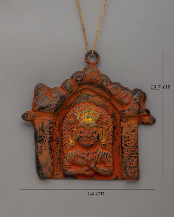 Additionally, the necklace around his neck emphasizes his protective nature, and the artistic detailing around the figure adds depth and spiritual meaning. The locket’s copper material gives it a sense of warmth to its appearance. The size of 13.5 cm in height and 14 cm in width makes it perfect for a wall hanging or pendant, creating a bold and spiritual presence in any space. The combination of rich textures, vivid design, and spiritual symbolism makes this locket an excellent addition to any collection of sacred or decorative items.