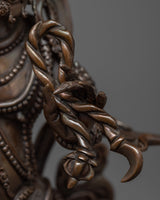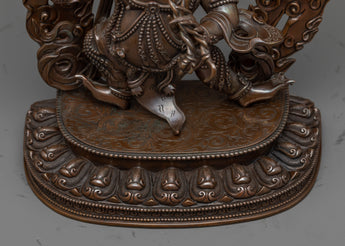 With our Wrathful Vajrapani Statue, you may embody the strong spirit of fearlessness. This stunning art is painstakingly made with an oxidized copper body and is 12.2 inches tall with a secure 9-inch base. Feel the surge of confidence and strength from this wrathful deity as you observe its ferocious visage and dynamic attitude. The divine energy of Vajrapani is renowned for its strength in repelling impediments and bad energy. Its profound presence is enhanced by its 3.07 kg weight, which serves as a continual reminder of Vajrapani's invincibility.