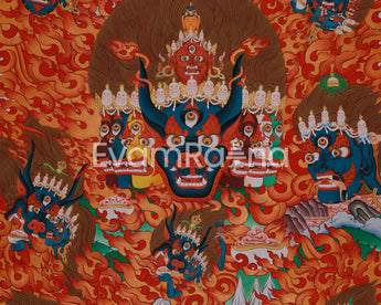 Yamantaka Head Thangka Painting | Guardian Against Ignorance, Fear, and Spiritual Obstacles