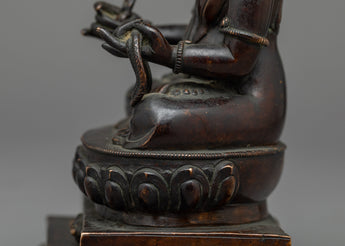 Through our Yamraj Statue, explore the mystic world of life and death. This magnificent work of art, which has an oxidized copper body, captures the spirit of Yamraj, the celestial justice of karma. This statue, which stands with solemnity and authority, serves as a reminder of life's cyclical nature and the effects of one's actions. Consider Yamraj's presence as you embrace the profound insight that comes from being aware of the subtleties of karma. The finely created details further enhance this statue's devout air, which beckons you to think about the soul's unfathomable journey and the secrets of life.