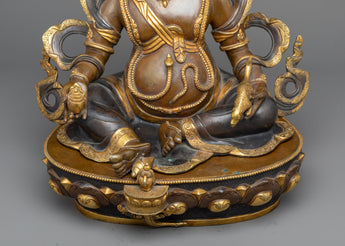 Yellow Dzambhala, a Buddhist god famous for giving prosperity and financial stability to his devotees, is known as the God of Wealth. He is frequently represented carrying a mongoose, which represents the abundance of money, and he serves as a protector, teaching individuals to not only amass wealth but to use it properly for the common benefit. This statue portrays the essence of Dzambhala in all his majesty, inviting you to welcome a life of prosperity, wisdom, and spiritual progress while instilling a deep faith in the universe's compassion.