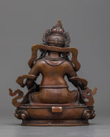 The oxidized copper lends the statue a rich, earthy tone, emphasizing the fine details and the forceful presence of Yellow Zambhala. This one-of-a-kind finish gives the figure an ancient charm and depth, underlining its spiritual value and artistic beauty.