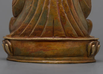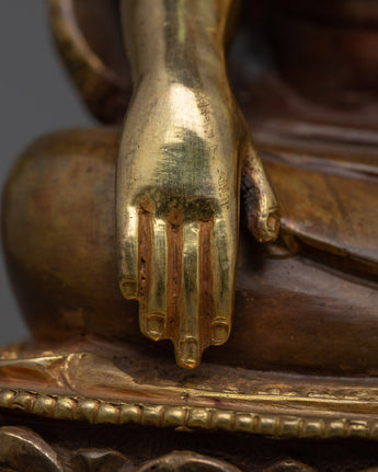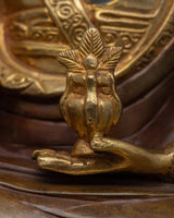 This monument, masterfully carved in Nepal's spiritual heartlands, is a magnificent testament to traditional artisanship. Every inch is a monument to Zhabdrung's unmatched contribution to spirituality and nationhood, crafted from pure copper and adorned in bright 24k gold gilding coupled with delicate acrylic paintings. Allow this emblem of unification and spiritual enlightenment to adorn your altar or meditation place, linking you to Zhabdrung's tradition and sacred mantra.
